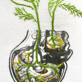 My HEALING project was initially inspired by reading about neuroplasticity and experiencing the therapeutic effects of embroidery. Then it turned into a meditation about our entanglement with plants and soil within the eternal cycle of life on earth. Plants feed us, they can heal our bodies and nourish our souls; sometimes they can kill us. And when we die our bodies become nutrients for plants, via an untold number of micro- and not so micro organisms.